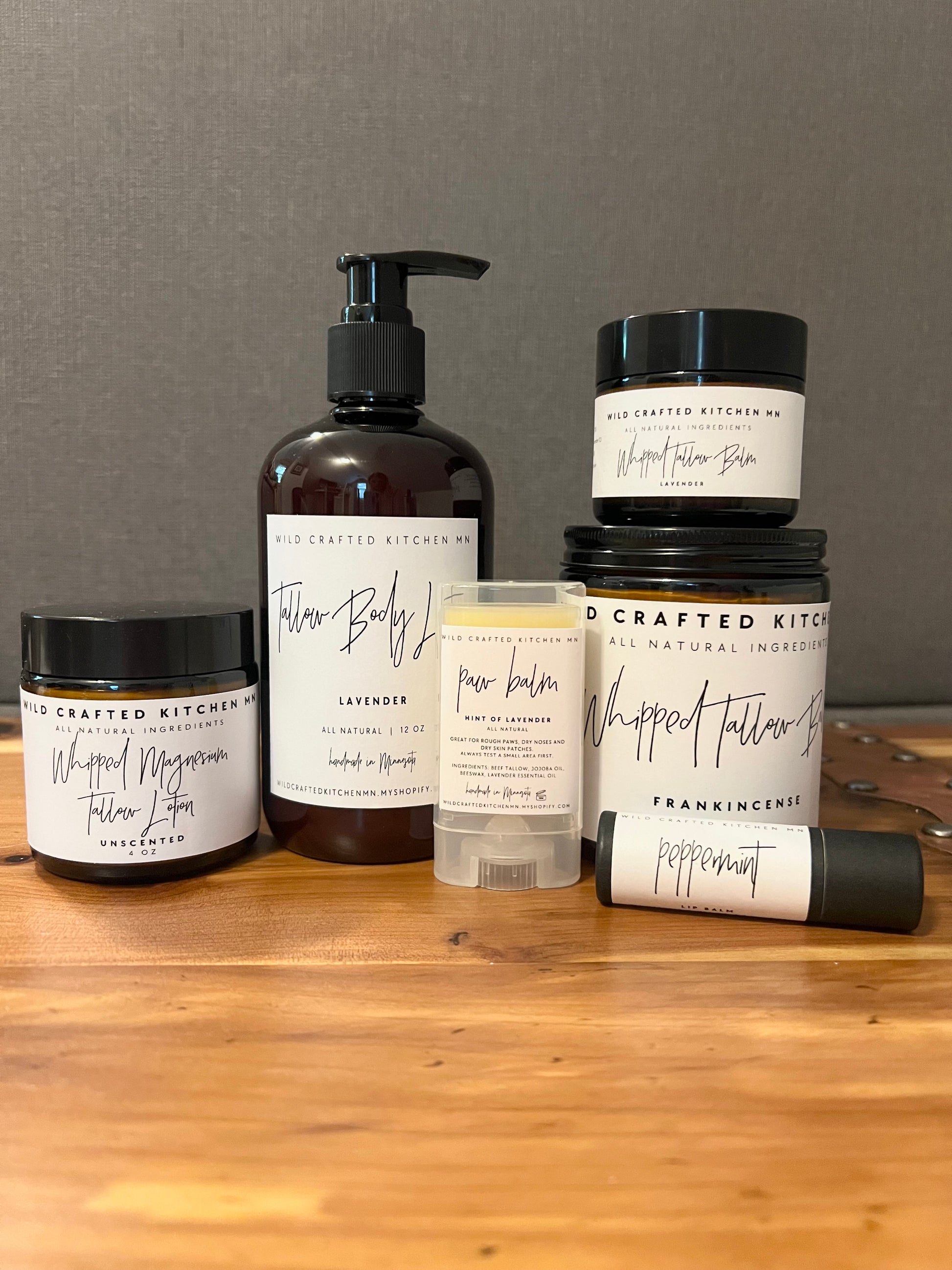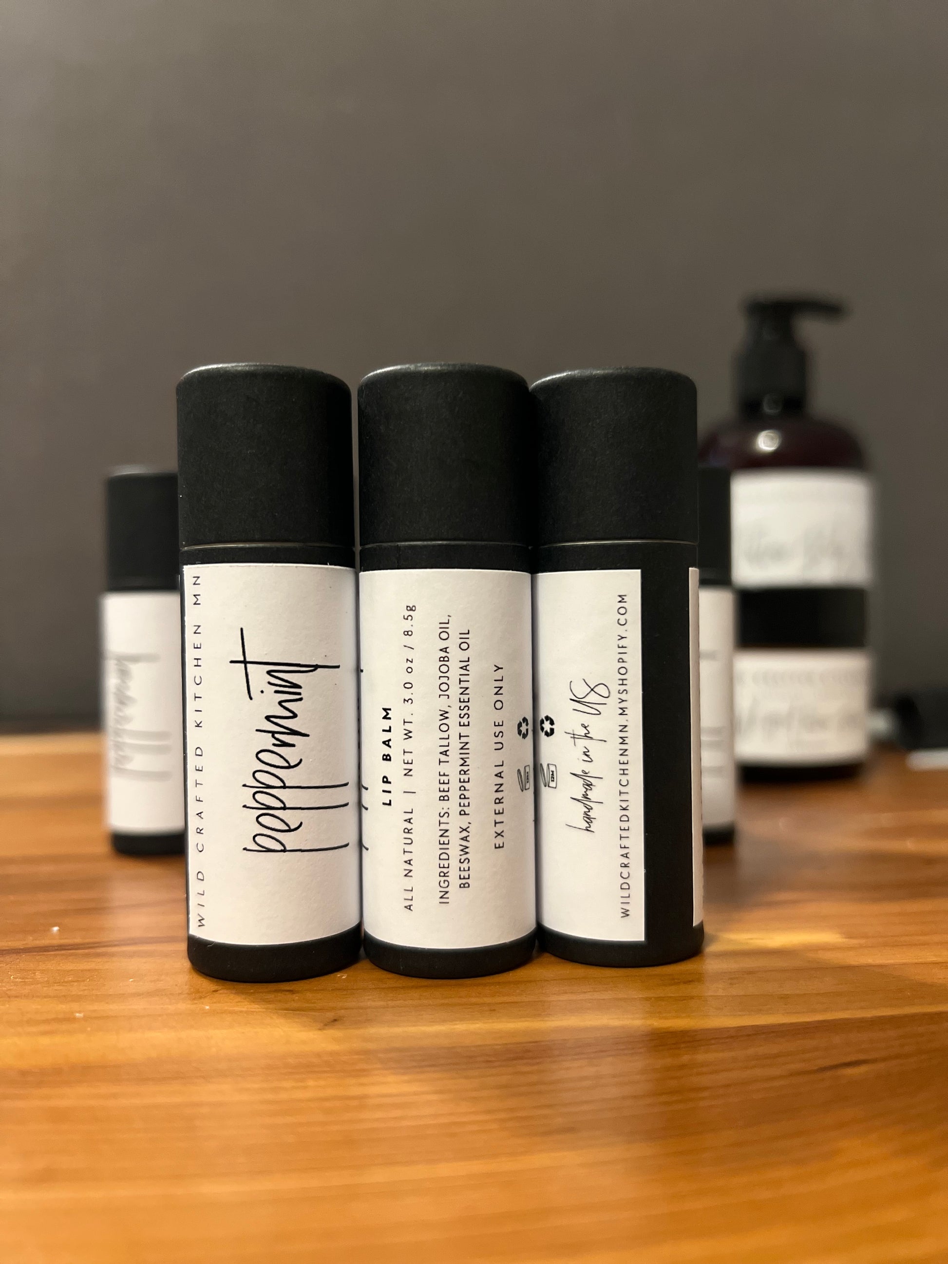 Handcrafted with 100% American farm-raised cattle tallow, local beeswax, jojoba oil, and high-quality essential oils, this lip balm delivers deep, lasting hydration from nature’s most nourishing ingredients. Tallow, rich in vitamins A, D, E, and K, closely mimics the skin’s natural oils to soothe and restore dry, chapped lips. Beeswax seals in moisture while providing a gentle barrier against the elements. Jojoba oil offers lightweight, non-greasy conditioning, and our essential oil blend adds a subtle, refreshing scent.